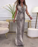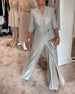 V-ringad långärmad jumpsuit med paljetter