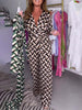 SPECIFIKATIONER Stil: Chic Material: Bomullsblandningar Mönstertyp: Geometriskt tryck Urringning: V-hals Typ av ärm: Vanlig ärm Ärmlängd: Långärmad Typ Byxor: Breda ben Byxlängd: Lång Passform typ: Vanlig Säsong: Vår, Sommar Detaljer: Ficka, Snöra upp Tillfälle: Dagligen Paketet innehåller: 1 x Jumpsuits STORLEKSTABELL(cm) Storlek Byst...