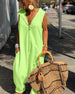 SPECIFIKATIONER Stil: Enkel Kategori: Jumpsuits Material: Bomullsblandningar Mönstertyp: Enfärgade Urringning: V-hals_V Ärmlängd: Ärmlös Typ Byxor: Breda ben Byxlängd: Lång Passform typ: Vanlig Säsong: Vår,Sommar Detaljer: Dragkedja Tillfälle: Dagligen Paketet innehåller: 1 x Jumpsuits STORLEKSTABELL(cm) Storlek Byst Längd S 97 130 ...