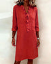 Klänning Kort Ärms Krage Enfärgad Knappar