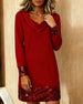 Klänning Med Spetsdetalj, V - Hals Och Plisserad Design, Elegant Stämning