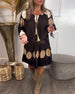 SPECIFIKATIONER Stil: Elegant Material: Polyester Klänningstyp: Skiftklänning Klänning längd: Knälängd Urringning: V-hals_V Typ av ärm: Lykthylsa Ärmlängd: Långärmad Detaljer: Lappverk, Genomskinlig Passform typ: Vanlig Säsong: Vår, Sommar, Höst Tillfälle: Dagligen Paketet innehåller: 1 x Klänning STORLEKSTABELL(cm) Storlek Byst L...
