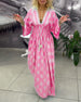 SPECIFIKATIONER Stil: Enkel Material: 95% polyester, 5% spandex Klänningstyp: Skiftklänning Klänning längd: Maxi Urringning: V-hals_V Mönstertyp: Tryckt Typ av ärm: Volangärm Ärmlängd: 3/4 ärm Detaljer: Rufsad Passform typ: Lös Säsong: Vår, Sommar, Höst Tillfälle: Dagligen Paketet innehåller: 1 x Klänning STORLEKSTABELL(cm) Storlek Byst...