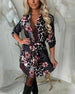 Klänning med 3/4-ärm och blommönster