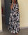 Färgglad tryckt lång klänning med V-ringning och raglanärmar