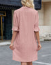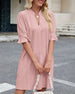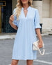 SPECIFIKATIONER Stil: Enkel Material: Bomullsblandningar Klänningstyp: Skiftklänning Klänning längd: Över knä Urringning: V-hals_V Mönstertyp: Enfärgade Typ av ärm: Volangärm Ärmlängd: Halvärm Detaljer: Rufsad Passform typ: Vanlig Säsong: Vår,Sommar Tillfälle: Dagligen Paketet innehåller: 1 x Klänning STORLEKSTABELL(cm) Storlek Byst Län...