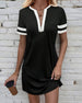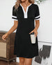 Klänning Halvdragkedja Färgblock Slim-Fit Kortärmad