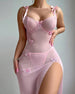 Mesh-Fjäril Högt Slit Suspender Klänning