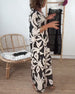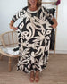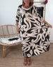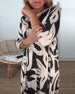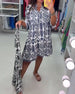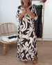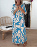 Mönstrad lös klänning med klocka och ärmar V-ringad