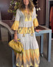SPECIFIKATIONER Stil: Enkel Material: Bomullsblandningar Klänningstyp: Skiftklänning Klänning längd: Maxi Urringning: V-hals_V Mönstertyp: Tryckt Typ av ärm: Flare ärm Ärmlängd: Långärmad Detaljer: Lappverk,Snöra upp Passform typ: Vanlig Säsong: Vår,Sommar Tillfälle: Dagligen Paketet innehåller: 1 x Klänning STORLEKSTABELL(cm) Storlek Byst L...