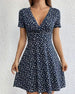 Kortärmad v-ringad klänning med tryck