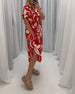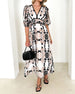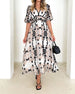 Elegant klänning med djup V halvärm med tryck