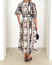 Elegant lång klänning med puffärmar och tryck