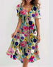 SPECIFIKATIONER Stil: Semester Material: 100% Polyester Klänningstyp: A-linje Klänning längd: Midi Urringning: V-hals_V Mönstertyp: Blommig Typ av ärm: Vanlig ärm Ärmlängd: Kortärmad Detaljer: Blandade Passform typ: Vanlig Säsong: Sommar Tillfälle: Semester Paketet innehåller: 1 x Klänning STORLEKSTABELL(cm) Storlek Byst Längd Arml...
