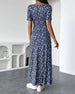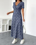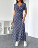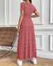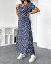 Klänning med korta ärmar, blommigt tryck och V-ringning