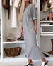 SPECIFIKATIONER Klänningstyp: Denim Klänning längd: Maxi Stil: Vardag Material: Denim, Polyester Sammanhang: Vardag Urringning: Slag Mönstertyp: Enfärgad Typ av ärm: Vanlig ärm Ärmlängd: Halvärm Passform: Lös Säsong: Vår, Sommar, Höst Förpackningen innehåller: 1 x Klänning STORLEKSTABELL(cm) Storlek Byst Armlängd Midjeomkret...