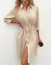 SPECIFIKATIONER Stil: Enkel Material: Bomullsblandningar Klänningstyp: Skjorta Klänning längd: Knälängd Urringning: Skjortkrage Mönstertyp: Enfärgade Typ av ärm: Vanlig ärm Ärmlängd: Långärmad Detaljer: Snöra upp, Spänne Passform typ: Vanlig Säsong: Vår, Sommar, Höst Tillfälle: Dagligen Paketet innehåller: 1 x Klänning STORLEKSTABELL(cm) ...