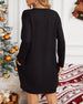 SPECIFIKATIONER Stil: Enkel Material: Bomullsblandningar Klänningstyp: Skiftklänning Klänning längd: Över knä Urringning: Rund nacke Mönstertyp: Enfärgade Typ av ärm: Vanlig ärm Ärmlängd: Långärmad Detaljer: Ficka Passform typ: Lös Säsong: Höst, Vinter Tillfälle: Dagligen, Arbete Paketet innehåller: 1 x Klänning STORLEKSTABELL(cm) Storl...