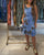 Fritidsklänning i kontrasterande bladtryck