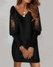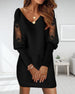 Klänning Spets Långärmad V-Ringning Sammet