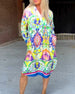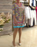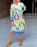 SPECIFIKATIONER Stil: Elegant Material: Bomullsblandningar Klänningstyp: Skiftklänning Klänning längd: Över knä Urringning: V-hals_V Mönstertyp: Tryckt Typ av ärm: Slits ärmar Ärmlängd: 3/4 ärm Passform typ: Vanlig Säsong: Vår, Sommar, Höst Tillfälle: Dagligen Paketet innehåller: 1 x Klänning STORLEKSTABELL(cm) Storlek Byst Längd ...