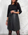 Veckad enfärgad klänning med hög krage