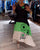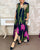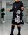 Avslappnad lös klänning med lövtryck med slits och kort ärm