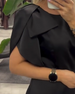 Enfärgad Klänning Med Hög Halsringning Och Modern Design