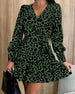 💖Black-Friday-Mega-Erbjudande💖Leopardprintad Klänning Med Snörliv, V-Ringning Och Midjebälte