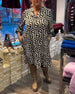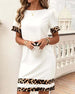 Klänning Med Leopardmönstrat Patchwork Och Rund Hals