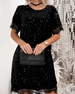 Stilfull Klänning Med Rund Halsringning Och Paljetter