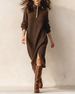 Klänning Med Knappning Och Långa Ärmar
