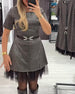 Snygg klänning med rund halsringning i skimrande mesh
