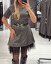Klänning Mesh Sticksöm Pälsärm Veckad