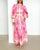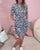 Elegant tryckt klänning med V-ringad veck och bell-sleeve