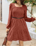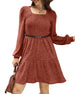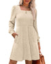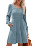 🍂2025 Höstens Nya Stil⏰ Damklänning med Fyrkantig Hals, Lyktärm och Ribbad Struktur