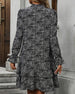 SPECIFIKATIONER Stil: Enkel Material: Bomullsblandningar Klänningstyp: Skiftklänning Klänning längd: Över knä Urringning: V-hals_V Mönstertyp: Tryckt Typ av ärm: Vanlig ärm Ärmlängd: Långärmad Passform typ: Vanlig Säsong: Vår,Höst Tillfälle: Dagligen Paketet innehåller: 1 x Klänning STORLEKSTABELL(cm) Storlek Byst Längd S 97 95 M 101...