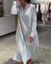 SPECIFIKATIONER Stil: Enkel Material: Bomullsblandningar Klänningstyp: Skjorta Klänning längd: Midi Urringning: Slag Mönstertyp: Tryckt Typ av ärm: Vanlig ärm Ärmlängd: Långärmad Detaljer: Ficka,Knappar Passform typ: Vanlig Säsong: Vår,Sommar Paketet innehåller: 1 x Klänning STORLEKSTABELL(cm) Storlek Byst Längd S 97 120 M 101 121.5 L ...