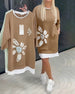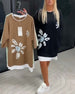 Sweatshirtklänning Rund Hals Tryckt Lappverk