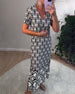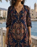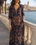 Klänning V-Ringad Retro Tryckt Maxi