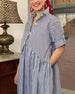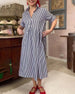 Klänning Krage Knappning Ner Randig