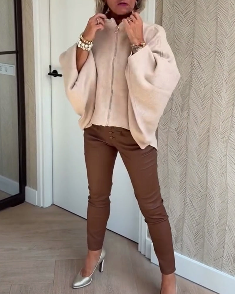 Enkel kofta med fladdermushuva i enfärgad färg