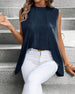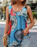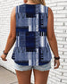 Linne V-Ringad Utan Ärmar Tryckt Färgblock