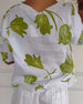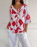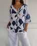 SPECIFIKATIONER Topptyp: Toppar Stil: Enkel Material: 50% linne, 50% bomull Tillfälle: Dagligen Urringning: V-hals_V Mönstertyp: Blommig Typ av ärm: Vanlig ärm Ärmlängd: 3/4 ärm Passform typ: Vanlig Säsong: Vår, Sommar, Höst Detaljer: Knappar Paketet innehåller: 1 x Topp STORLEKSTABELL(cm) Storlek Byst Längd S 95 68 M 100 69.5...