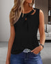Avslappnad topp med diamanttryck, ärmlös rund hals
