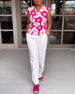 Linne Fyrkantig Halsringning Plisserad Tryck