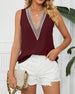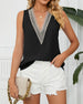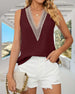 Avslappnad topp med diamanttryck, ärmlös rund hals