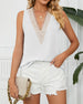 SPECIFIKATIONER Topptyp: Väst Stil: Elegant, Kontor Material: Chiffong, Polyester Tillfälle: Dagligen, Arbete Urringning: V-hals_V Mönstertyp: Enfärgade Ärmlängd: Ärmlös Passform typ: Vanlig Säsong: Sommar Detaljer: Lappverk, Spets Paketet innehåller: 1 x Linne STORLEKSTABELL(cm) Storlek Byst Längd S 94 69 M 100 70 L 106 71 ...
