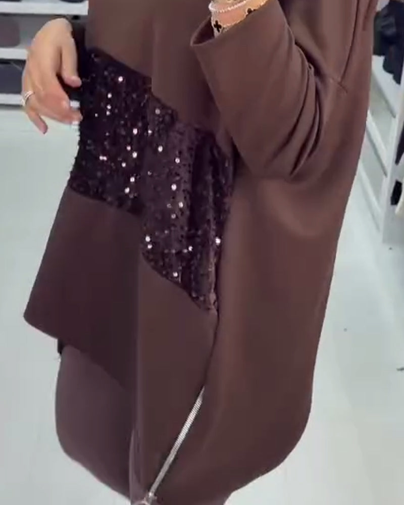 Enfärgad dragkedja i enfärgad tröja med rund hals