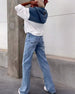 Hoodie I Denim Med Flätstickning Och Lapptäcktsdetaljer